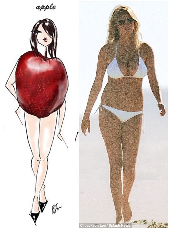 Silueta măr se defineste printr-un aspect rotunjit in totalitate, in special in zona abdomenului. Talia nu este definita, ci dimpotriva, destul de pronuntata si coborata. Este posibil sa ai colacei, iar soldurile si coapsele sunt si ele destul de pline, desi mai inguste decat partea superioara a corpului.